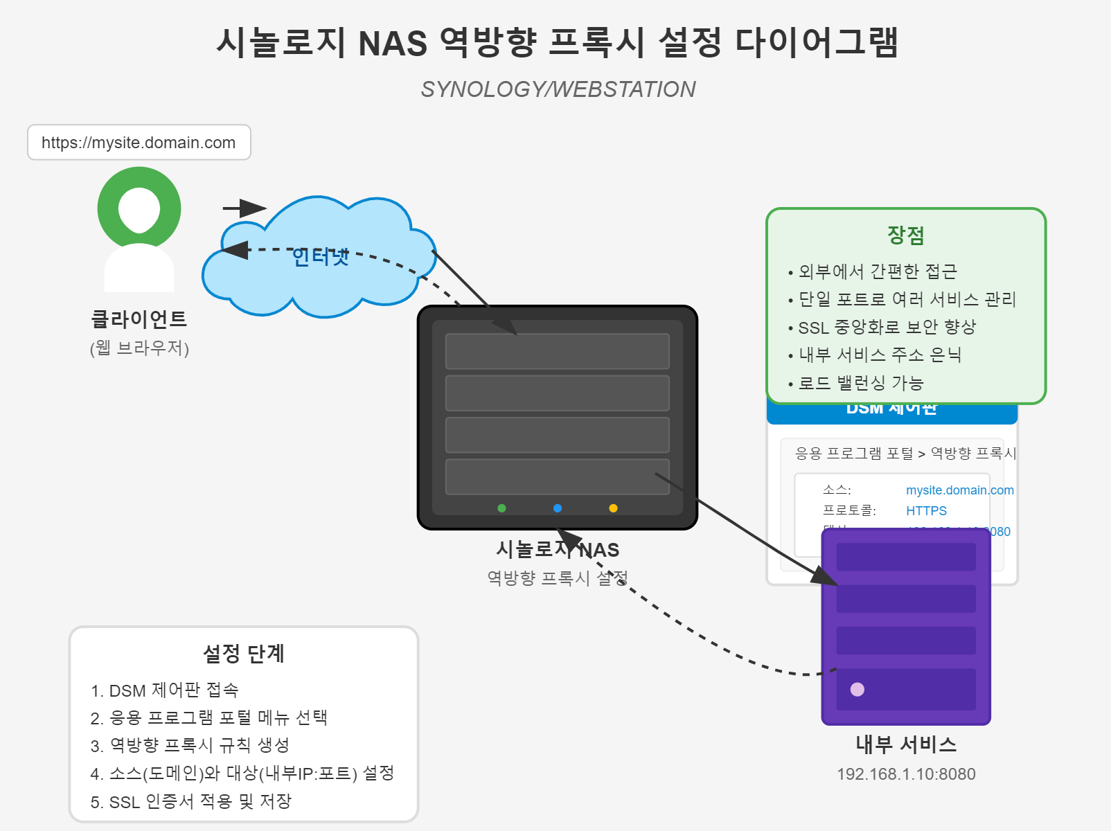 안녕하세요! 시놀로지 NAS에 역방향 프록시(Reverse Proxy)를 설정하는 방법을 안내해 드리겠습니다.