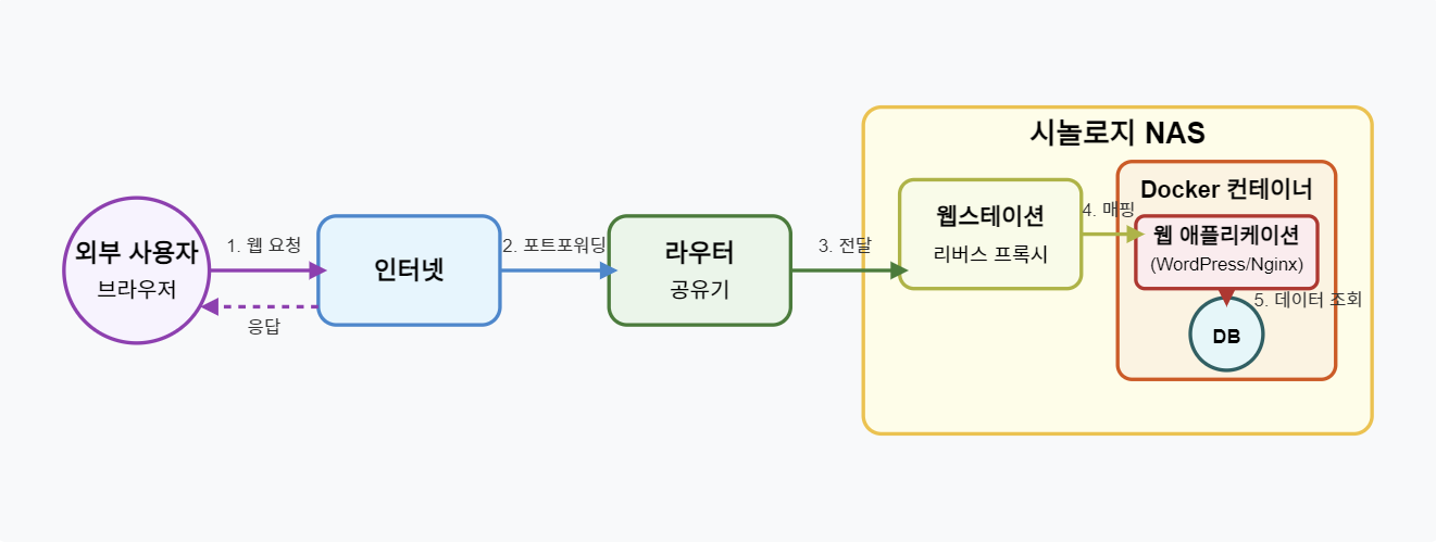 - 키워드: 시놀로지, Docker, 웹스테이션, NAS, 웹서비스, 자체호스팅