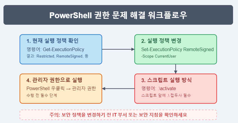 PowerShell의 실행 정책은 스크립트 실행에 관한 보안 설정으로, Windows에서 Pinokio 가상환경 활성화 과정에서 중요한 역할을 합니다. 주요 정책 유형은 다음과 같습니다: