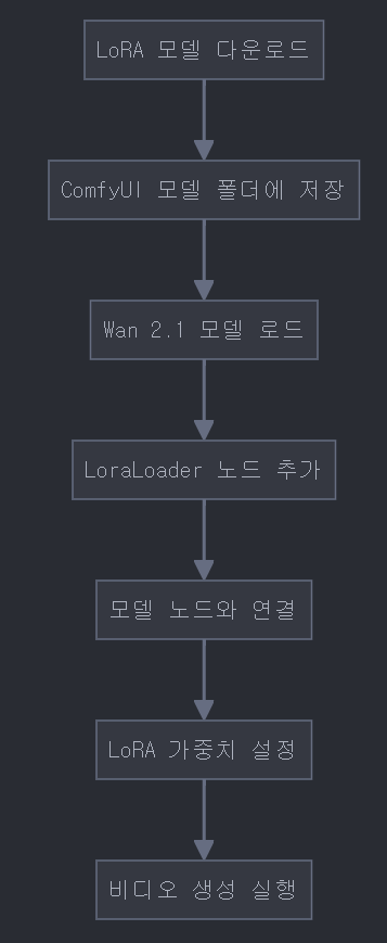 ComfyUI에서 Wan 2.1과 LoRA를 함께 사용하는 기본 워크플로우는 다음과 같습니다: