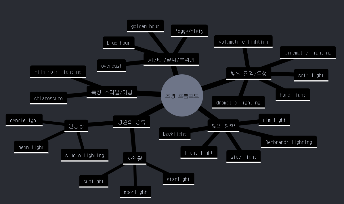 - 효과적인 조명 프롬프트 키워드 유형 및 예시
